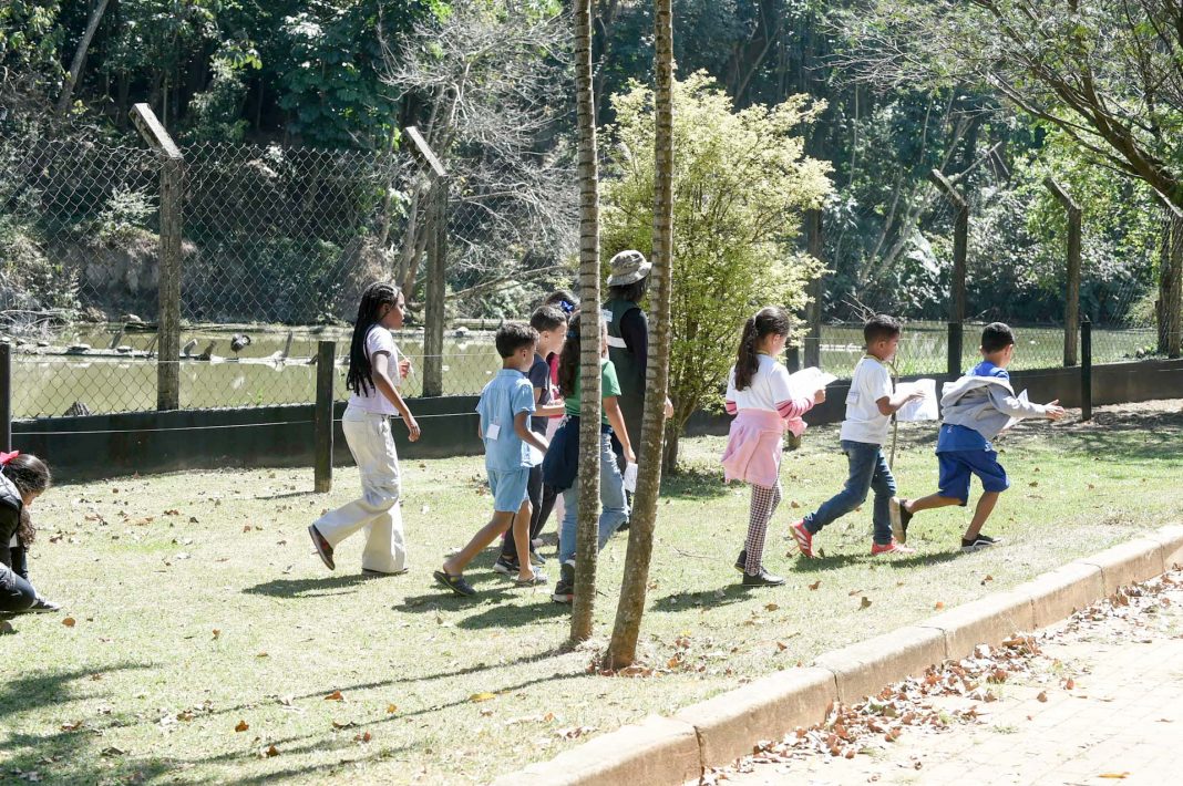 Uma atividade que mistura movimentação, curiosidade, senso de parceria, leitura de mapa, conhecimentos de escrita e sobre as árvores conquistou a criançada que nesta quinta-feira (11) passeava no Zoológico de Guarulhos, no Jardim Rosa de França.