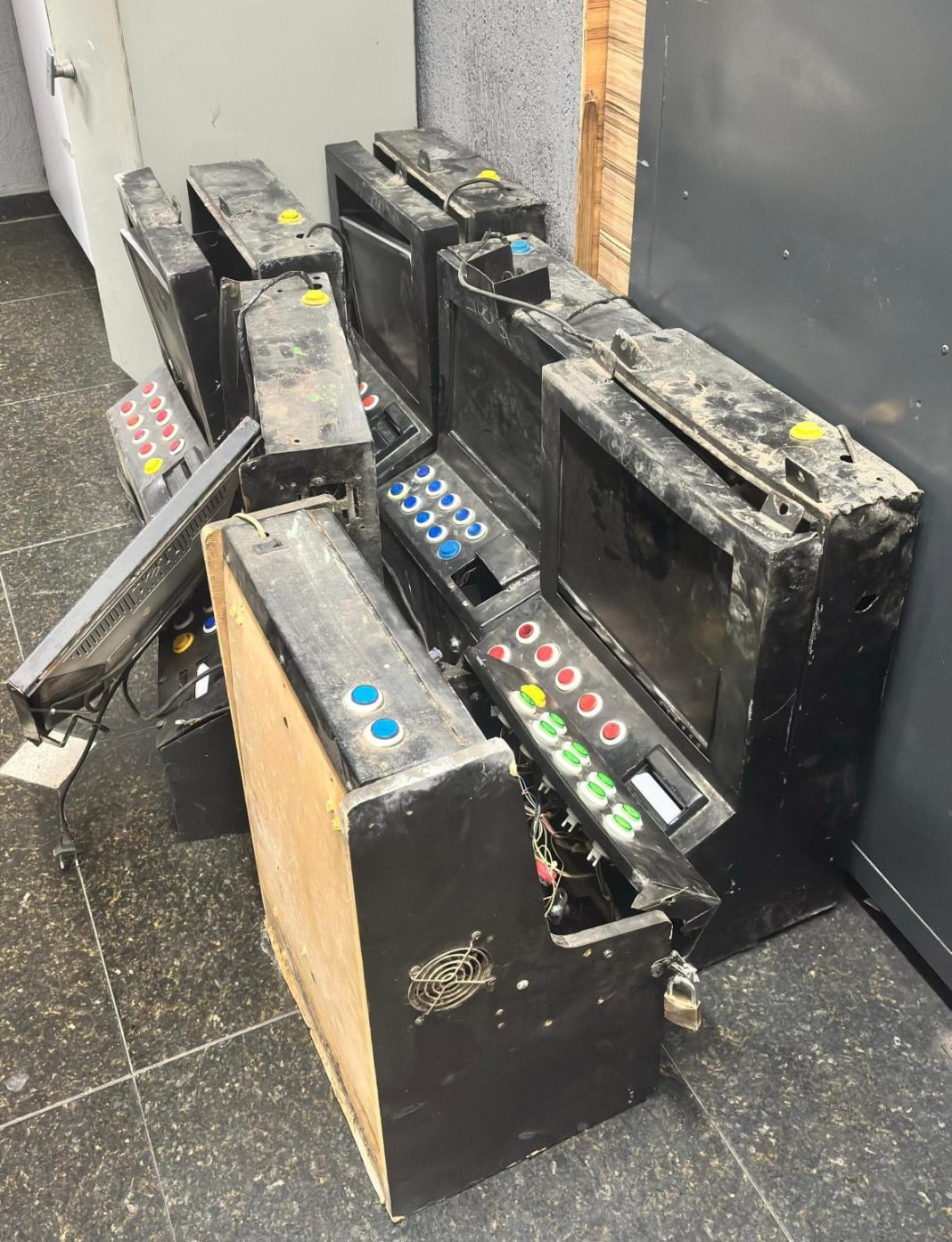 Agentes da Inspetoria Sul da Guarda Civil Municipal (GCM) de Guarulhos apreenderam seis máquinas caça-níqueis no bairro do Gopoúva, durante policiamento preventivo pela região. A equipe localizou em um barraco as máquinas que exploram jogos de azar. Os equipamentos foram removidos ao 1º Distrito Policial e o local foi preservado para perícia da Polícia Civil.