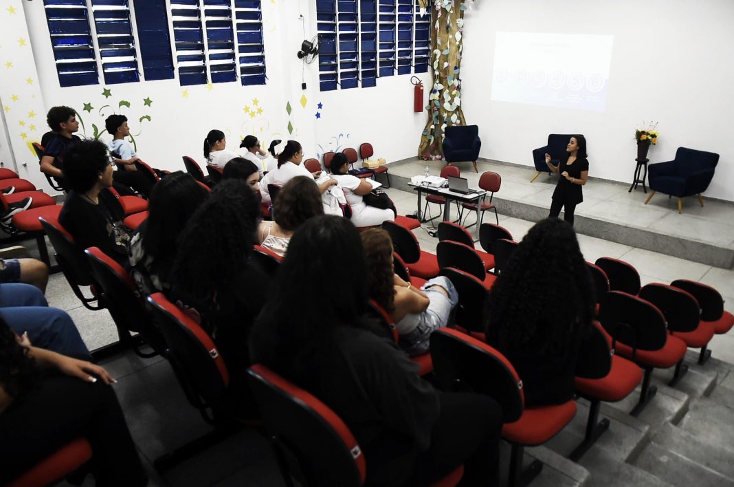 A Subsecretaria da Juventude promoveu nesta sexta-feira (17) o projeto Juventude na Escola para cerca de 320 alunos do ensino médio da EE Professor Homero Rubens de Sá, na Vila Galvão. A iniciativa da Prefeitura de Guarulhos tem como objetivo levar informação e orientação aos estudantes através de oficinas e palestras, ministradas por várias pastas, sobre vários assuntos como acessibilidade e inclusão, cultura, educação financeira, aviação, empregabilidade, primeiros socorros, saúde mental, descarte de resíduos e empreendedorismo.
