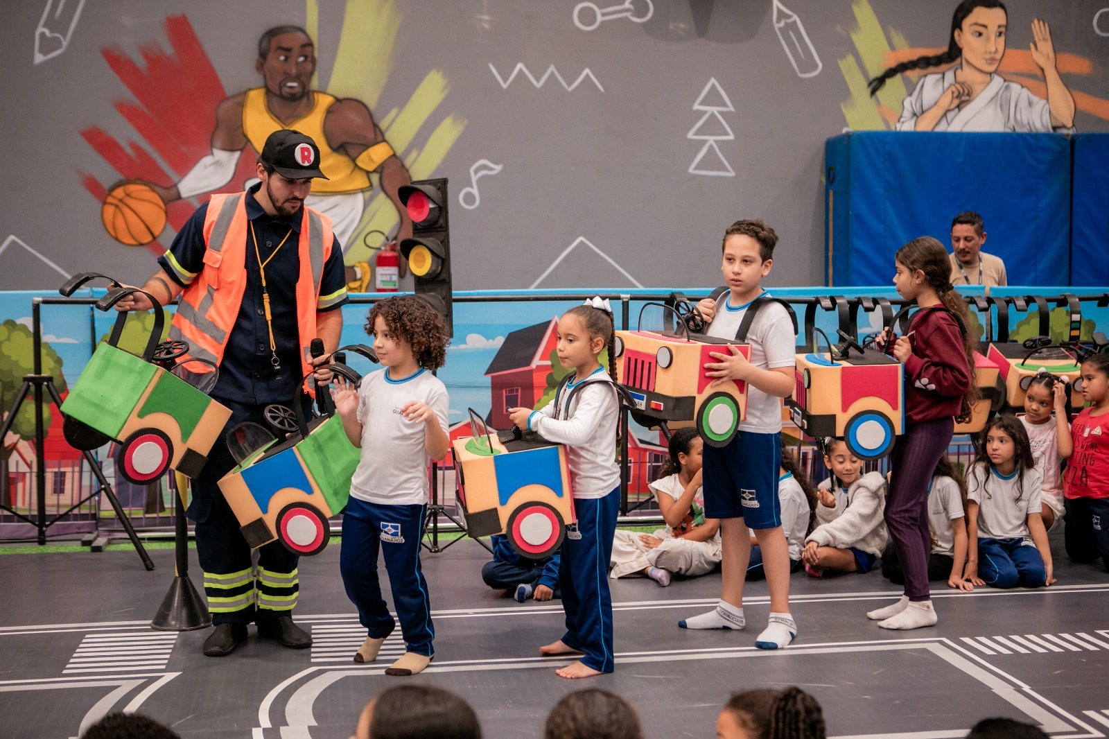 O personagem guarda de trânsito ressaltou a relevância de cumprir o Código de Trânsito Brasileiro tanto por condutores quanto por pedestres, visando primordialmente à prevenção de acidentes de qualquer natureza. Como futuro cidadãos, os alunos aprenderam que, para conduzir veículos como carros, motocicletas ou caminhões, é necessário obter uma Carteira Nacional de Habilitação para segurança de todos.