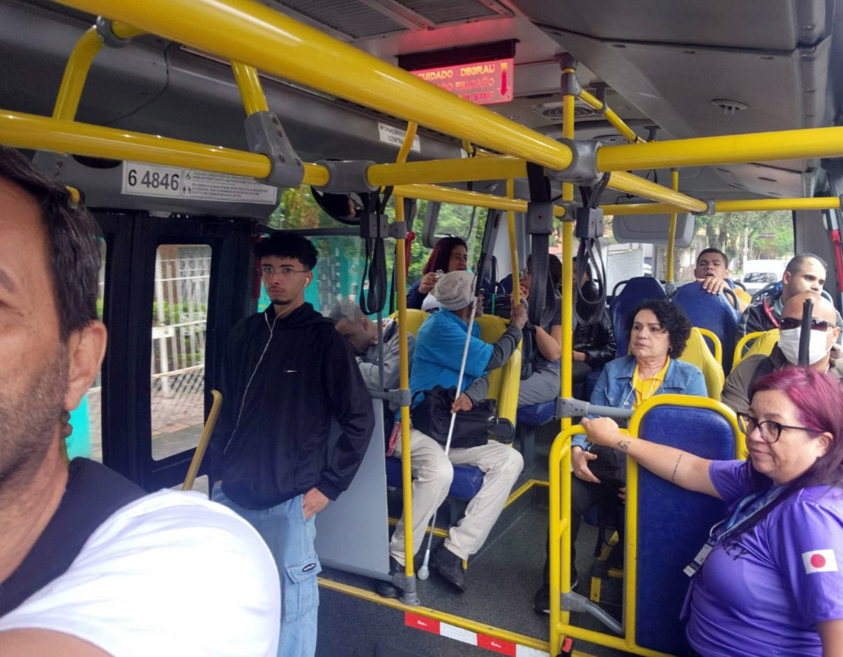 No último sábado (8), a Subsecretaria de Acessibilidade e inclusão levou 20 pessoas cegas assistidas pela pasta para conhecer a Feira Internacional de Tecnologias em Reabilitação, Inclusão e Acessibilidade 2025 (Reatech), no São Paulo Expo, na Capital. Como forma de estimular a autonomia dos deficientes visuais, após a visita, o grupo acompanhado da orientadora do projeto Práticas Educativas para a Inclusão Social (Peis), Fernanda Oliveira, realizou uma edição do Rolezinho de Bengala, retornando a Guarulhos todos juntos de transporte público (metrô e ônibus).