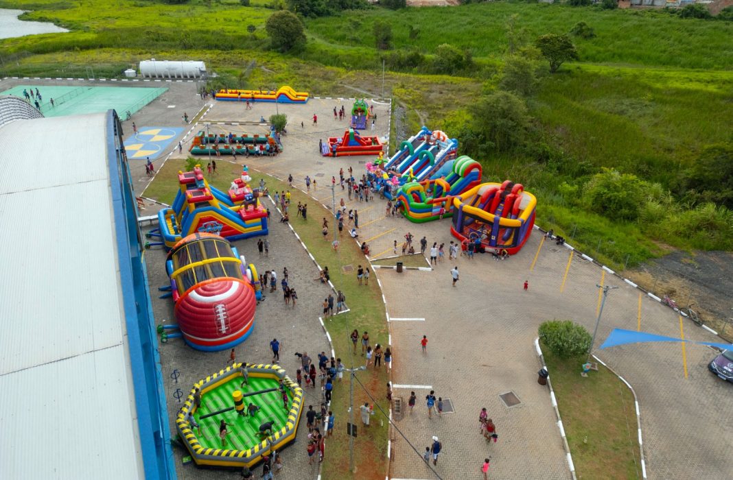 Os espaços do CEU Bonsucesso foram completamente transformados em um universo repleto de alegria e diversão para receber crianças, jovens e adultos. Na quadra society, a criançada encontra grande variedade de brinquedos infláveis: toboágua, toboshark, splash slide, parque aquático, crazy ball, T-Rex, corrida de obstáculos, tobogã e parque Safari. No ginásio, a área baby também oferece brinquedos infláveis com trenzinho, carrossel e bate-bate.