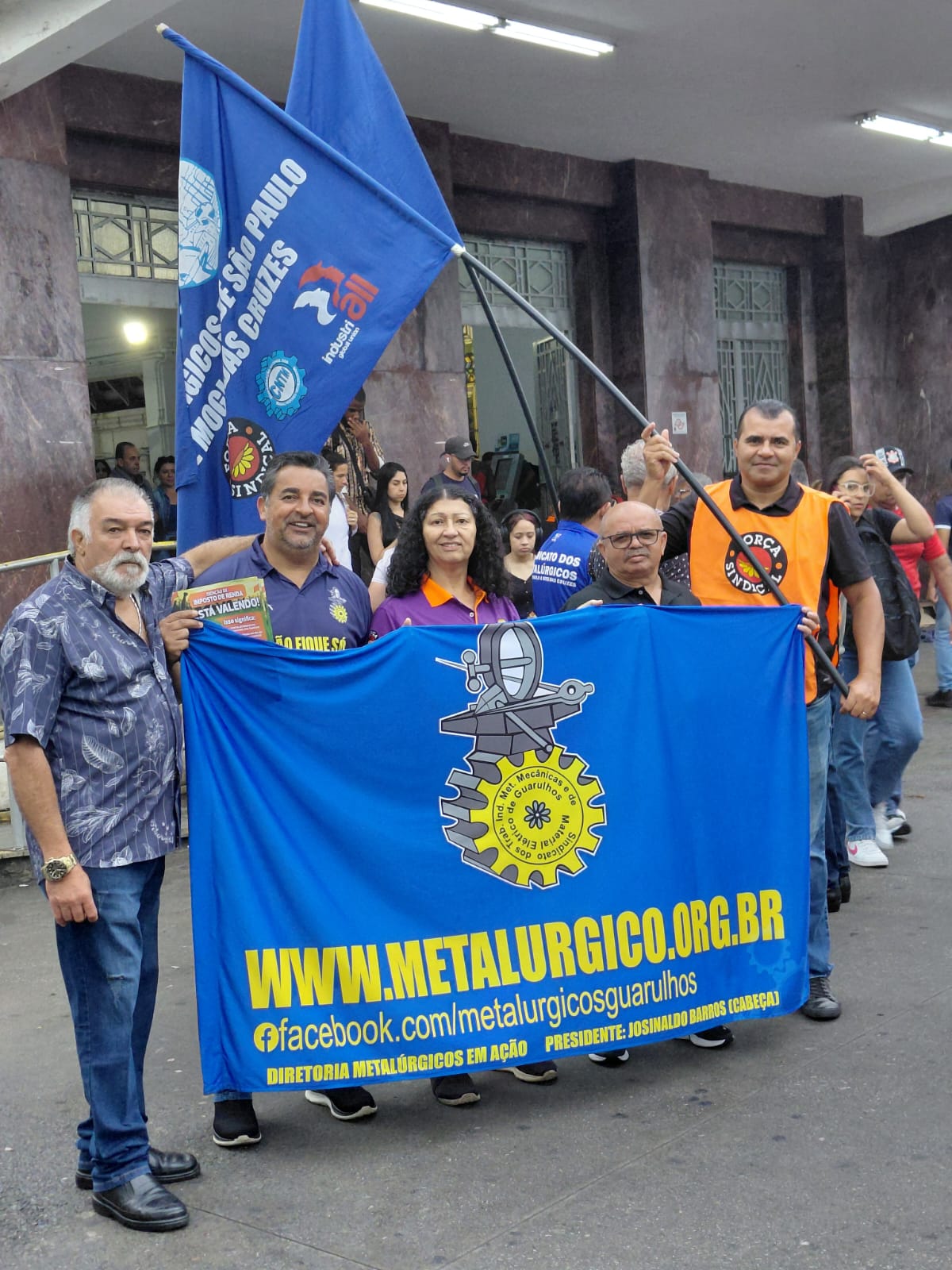 Na estação Brás, em São Paulo, os diretores Célio Malta e José João da Silva (Jau), do Sindicato dos Metalúrgicos de Guarulhos e Região, acompanhados do assessor Valdir Planas, distribuíram materiais informativos aos usuários do transporte público. Os panfletos explicam a nova regra do IR e destacam o impacto positivo da medida na renda dos trabalhadores.