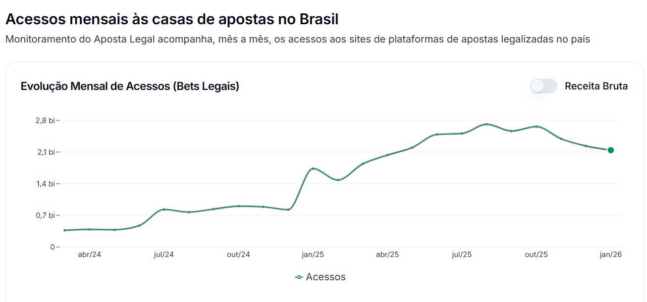 O mercado de apostas online legalizadas no Brasil encerrou 2025 com 26,4 bilhões de acessos, consolidando o primeiro ano completo da nova fase regulada em escala massiva.