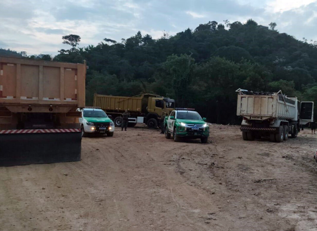 A Guarda Civil Municipal (GCM) flagrou três caminhões com irregularidades no transporte de resíduos sólidos na estrada Albino Martello, no Jardim Presidente Dutra, na noite de segunda-feira (30).